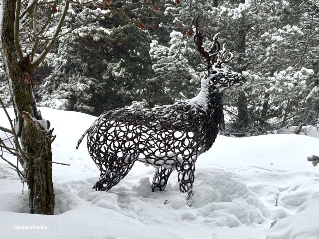 Se trata de un sendero señalizado de unos 2 kilómetros, inaugurado en 2008 y que cada año incorpora nuevas esculturas integradas en el paisaje. Una de las más llamativas es un ciervo a tamaño real realizado con herraduras y piezas metálicas, que sorprende en medio del bosque nevado.