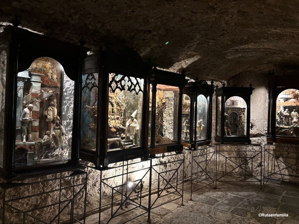 La última parte del recorrido conduce a otra cavidad a la que se accede por un gran portón. En este espacio se exponen belenes napolitanos en pequeñas capillas portátiles de madera, algunos del siglo XVIII. La tradición del presepe alcanzó su máximo esplendor durante el periodo borbónico, cuando la representación del nacimiento incorporaba escenas cotidianas de la vida napolitana.