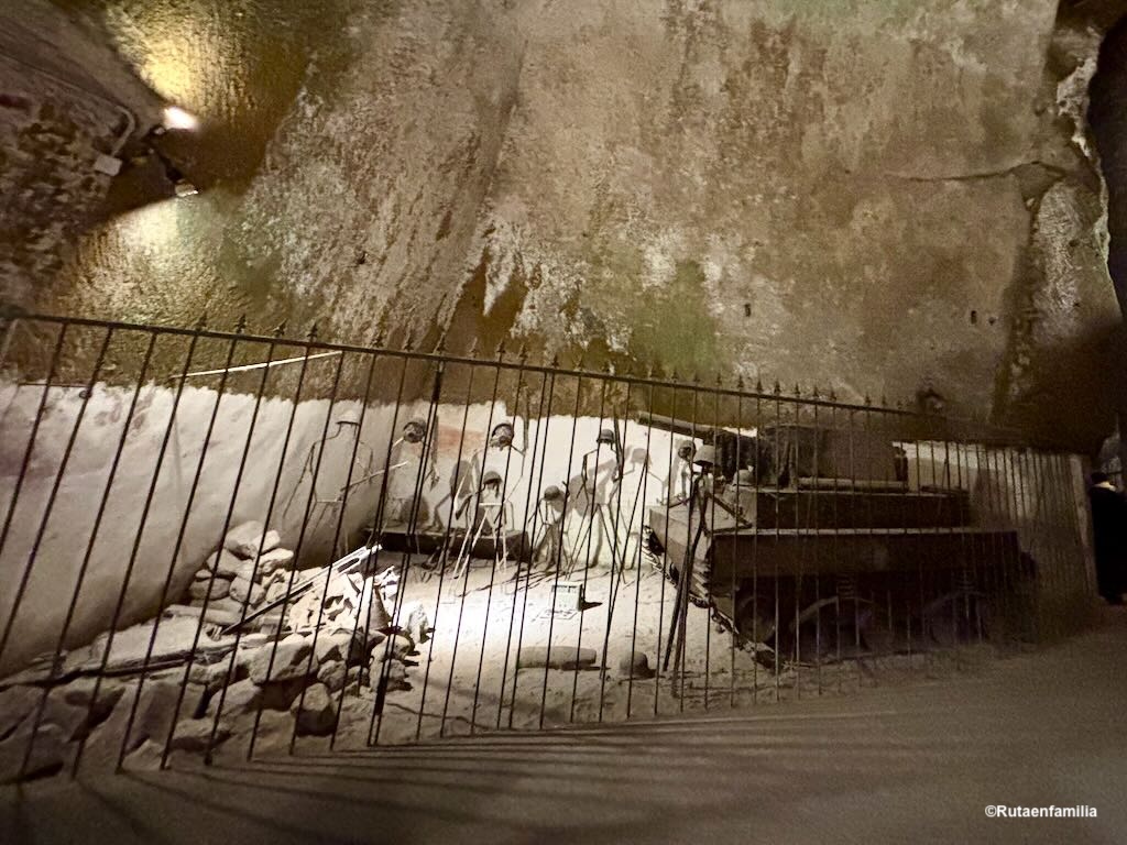 Durante el conflicto, miles de napolitanos pasaron aquí días y noches enteras. Aún pueden verse inscripciones, objetos cotidianos, juguetes y espacios recreados que ayudan a imaginar cómo se organizaba la vida bajo tierra. El subsuelo dejó de ser infraestructura hidráulica para convertirse en protección frente a los bombardeos.