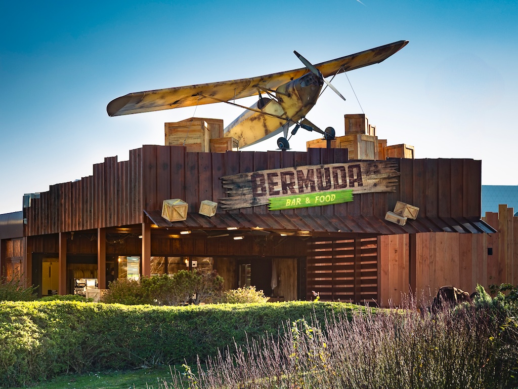 Después de tanta emoción, nada mejor que hacer una pausa en el nuevo Bermuda Bar, un espacio temático que prolonga la experiencia más allá de la atracción. Bajo el fuselaje de un avión suspendido, el visitante puede saborear hamburguesas, bocados tropicales y dulces con inspiración cubana rodeado de restos de aviones y vegetación.